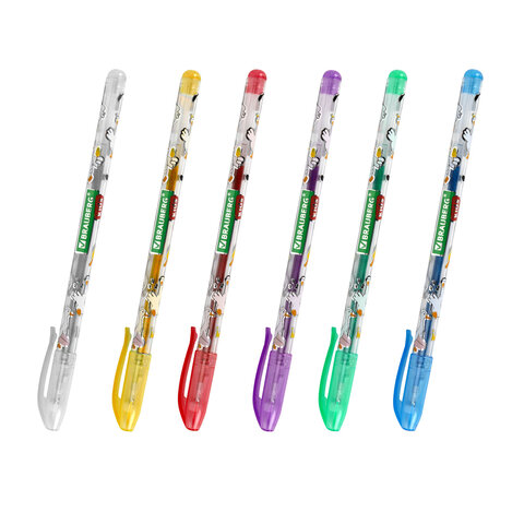 Ручки гелевые БЛЕСТКИ BRAUBERG "EXTRA", НАБОР 6 ЦВЕТОВ, узел 0,7 мм, линия 0,5 мм, 143908