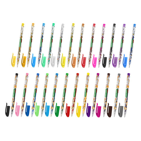 Ручки гелевые НАБОР 24 ЦВЕТА, ЮНЛАНДИЯ, корпус с печатью, узел 1 мм, линия письма 0,5 мм, 143821