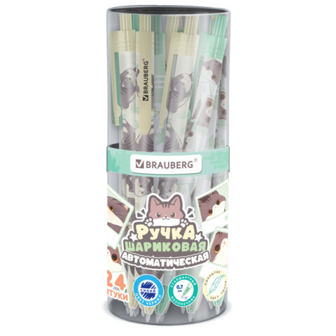 Ручка шариковая автоматическая BRAUBERG "МИЛЫЕ КОТЫ" – яркий и практичный пишущий инструмент, который поможет эффективно справляться с ежедневными задачами.