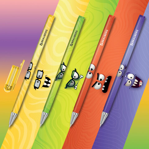 Ручка шариковая BRAUBERG "МОНСТРИКИ" – универсальный помощник для создания различных заметок и записей, идеально подходит для ежедневного использования.