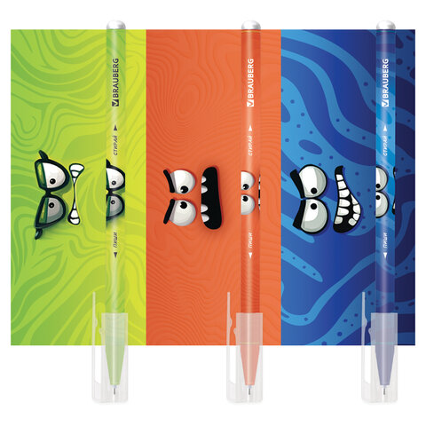 Ручка стираемая гелевая кросс-серии "МОНСТРИКИ" BRAUBERG – надежный проводник в мир идеальных записей. Больше не нужно бояться допустить ошибку: записи всегда можно легко исправить, просто воспользовавшись ластиком.