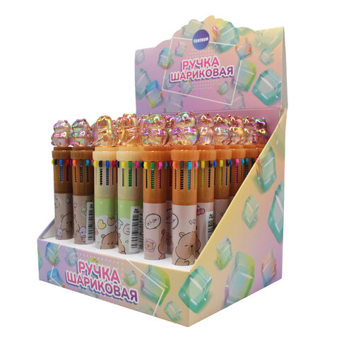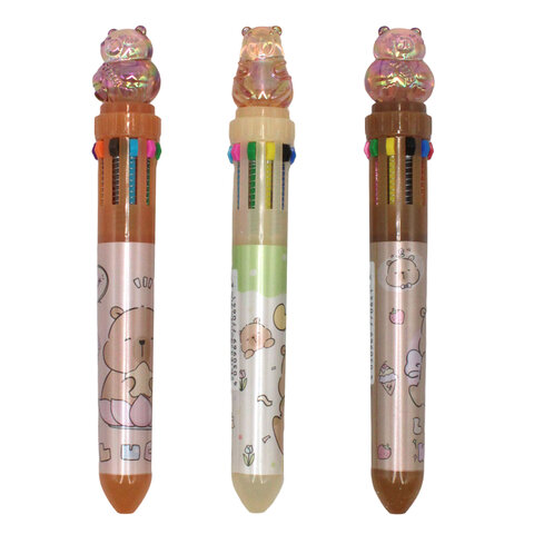 Ручка многоцветная с топпером шариковая 10 ЦВЕТОВ "Капибара". Модель удобна в использовании, экономит место в пенале или на рабочем столе, позволяет всегда иметь под рукой набор основных цветов для письма и выделения записей.