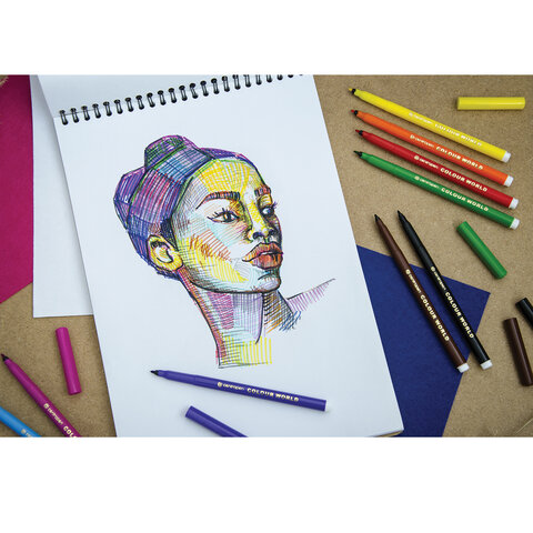 Цветные фломастеры с эргономичной зоной обхвата. Содержат безопасные для здоровья легкосмываемые чернила. Безопасный вентилируемый колпачок. Цилиндрический пишущий узел, устойчивый к вдавливанию.