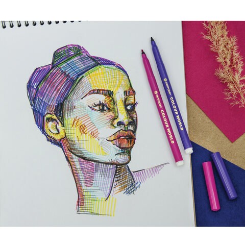 Цветные фломастеры с эргономичной зоной обхвата. Содержат безопасные для здоровья легкосмываемые чернила. Безопасный вентилируемый колпачок. Цилиндрический пишущий узел, устойчивый к вдавливанию. Толщина линии – 1 мм.