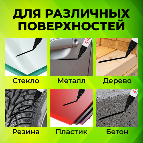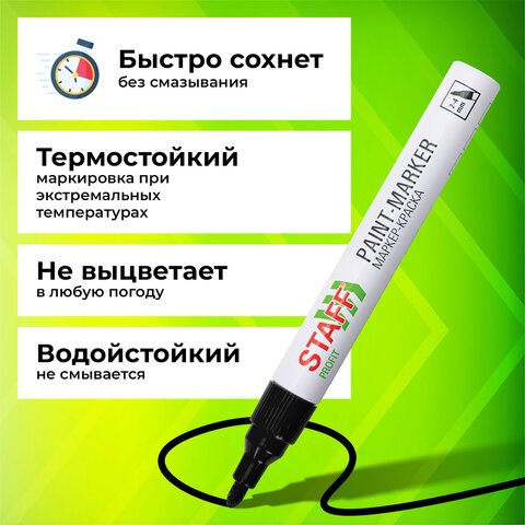 Маркер-краска лаковый STAFF PROFIT предназначен для маркировки различных поверхностей: бетон, дерево, стекло, металл, резина, пластик. Подходит для использования как в промышленных, так и в бытовых целях.