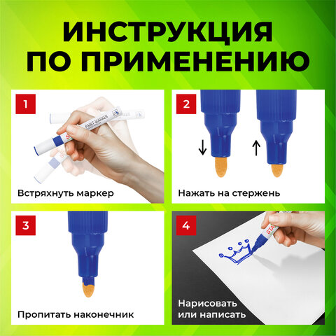 Высококачественные чернила синего цвета с лаковым эффектом идеально подходят для нанесения долговечной маркировки на любые поверхности. Благодаря усиленной формуле чернил краска ложится ровным слоем, полностью закрашивая поверхность. С помощью круглого прочного наконечника, выполненного из пористого акрила с шириной линии письма 2-4 мм, можно легко наносить широкие линии равномерным и однородным слоем.