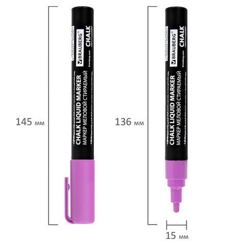Стираемый меловой маркер BRAUBERG "CHALK" предназначен для создания рисунков и надписей на гладких и прозрачных невпитывающих поверхностях (например, зеркалах, стекле, меловой пленке). Подходит для школьных занятий, идеальны для детского творчества!