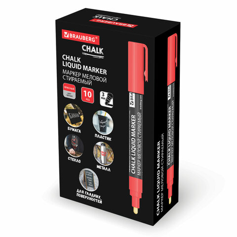 Стираемый меловой маркер BRAUBERG "CHALK" предназначен для создания рисунков и надписей на гладких и прозрачных невпитывающих поверхностях (например, зеркалах, стекле, меловой пленке). Подходит для школьных занятий, идеальны для детского творчества!