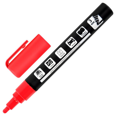 Рисунок получается плотный и яркий. Чернила на водно-меловой основе красного цвета без резкого запаха. Толщина линии письма – от 1 мм до 3 мм, зависит от угла наклона мелового маркера. Круглый корпус выполнен из пластика.