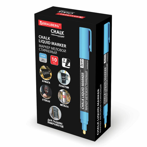 Стираемый меловой маркер BRAUBERG "CHALK" предназначен для создания рисунков и надписей на гладких и прозрачных невпитывающих поверхностях (например, зеркалах, стекле, меловой пленке). Подходит для школьных занятий, идеальны для детского творчества!