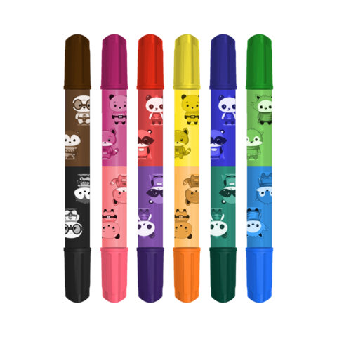 Фломастеры двусторонние BRAUBERG KIDS – прекрасные помощники в развитии творческих способностей у детей! Двусторонние толстые фломастеры имеют разные цвета с каждой стороны. На корпусе каждого фломастера нанесён яркий принт, с изображением милых зверушек.