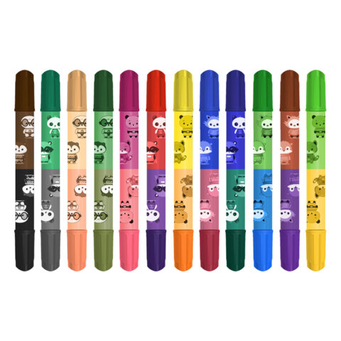 Фломастеры двусторонние толстые для малышей ультрасмываемые 12 штук / 24 цвета, BRAUBERG KIDS, 152626