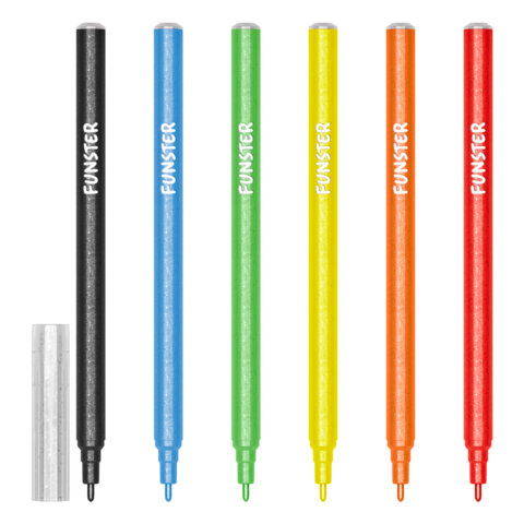 Фломастеры FUNSTER "GLITTER" с эффектом блёсток. Чернила на водной основе практически не имеют запаха, не токсичны и легко смываются с большинства материалов и тканей.