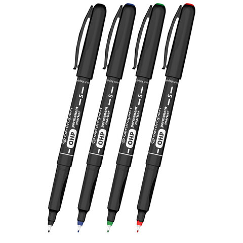Набор маркеров перманентных, 4 цвета. Ширина линии письма 0,3-0,4 мм. Пригодны для письма по большинству видов поверхностей: бумаге, картону, резине, пластику, металлу, стеклу. Маркер может находиться до 14 дней без колпачка, при этом чернила не высыхают. Фетровый (или пористый) наконечник. Светостойкие, водостойкие, термостойкие чернила. Тонкий наконечник. Товар не предназначен для детей и подростков