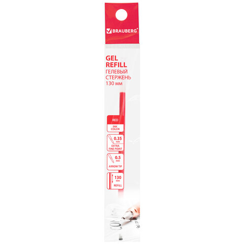 Стержень гелевый BRAUBERG 130 мм, КРАСНЫЙ, игольчатый узел 0,5 мм, линия письма 0,35 мм, 170171