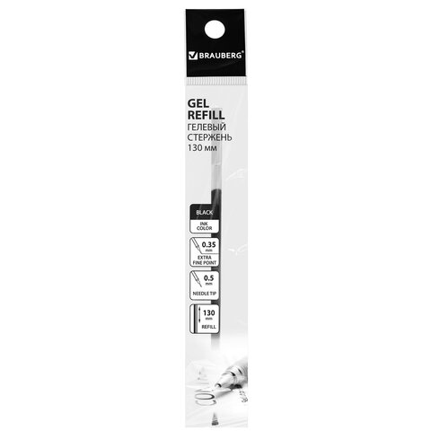 Стержень гелевый BRAUBERG 110 мм, ЧЕРНЫЙ, узел 0,5 мм, линия письма 0,35 мм, 170173