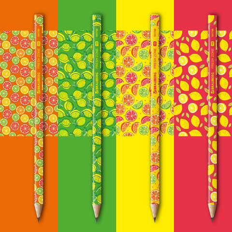 Карандаш чернографитный BRAUBERG "FRESH ZONE", 1 шт., HB, корпус ассорти, 181759