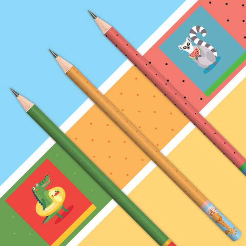 Каждый карандаш имеет индивидуальный штрих-код. Легко затачивается, максимально устойчив к повреждениям. Изготовлен из дерева высокого качества. Имеет круглый корпус с яркой печатью ассорти. Карандаш длиной 175 мм обладает средней степенью твердости – HB. Поставляется заточенным в пластиковой тубе по 45 штук.