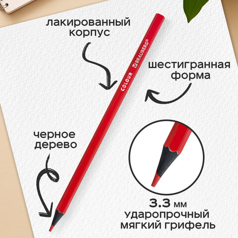 Шестигранные цветные карандаши высокого качества из натурального черного дерева BRAUBERG серии BLACK WOOD SCHOOL обеспечивают гладкое письмо благодаря мягкому грифелю. Особое качество красящего пигмента гарантирует насыщенные яркие цвета.