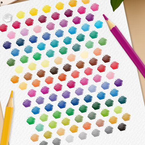 Набор состоит из карандашей 120 ярких и насыщенных цветов, которые позволят придать изображению практически любой желаемый оттенок.