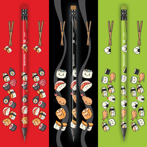 Карандаш чернографитный BRAUBERG "JAPAN FOOD" – первый помощник при выполнения различных заметок. Позволяет сделать легкий набросок или даже нарисовать полноценную картину. Используется повсеместно.
