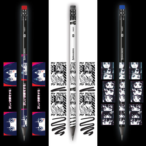 Набор карандашей чернографитных BRAUBERG "MANGA" поставляется в упаковке из ПВХ с европодвесом по 12 штук.
