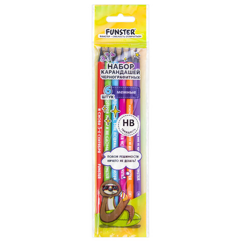 Набор карандашей чернографитных с мемной надписью FUNSTER (ФАНСТЕР) FUNNY NOTES CLRD, 6 штук, HB, с ластиком, 182040