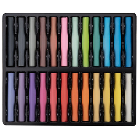 Легко ложится на различные фактуры цветной бумаги, бумагу для рисования, холст, картон, дерево, керамику. Также можно наносить на влажную поверхность или размывать водой для достижения акварельного эффекта. 24 цвета позволяют передать полную цветовую палитру. Высокое качество пигментов и связующего обеспечивает низкий расход материала, хорошую укрывистость и яркость цвета. Пастель имеет вид брусков с квадратным сечением. Не токсична и безопасна при использовании. При попадании на одежду или кожу рук легко смывается тёплой водой. Благодаря компактной упаковке удобно брать с собой.