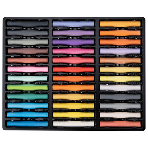 Легко ложится на различные фактуры цветной бумаги, бумагу для рисования, холст, картон, дерево, керамику. Также можно наносить на влажную поверхность или размывать водой для достижения акварельного эффекта. 36 цветов позволяют передать полную цветовую палитру. Высокое качество пигментов и связующего обеспечивает низкий расход материала, хорошую укрывистость и яркость цвета. Пастель имеет вид брусков с квадратным сечением. Не токсична и безопасна при использовании. При попадании на одежду или кожу рук легко смывается тёплой водой. Благодаря компактной упаковке удобно брать с собой.