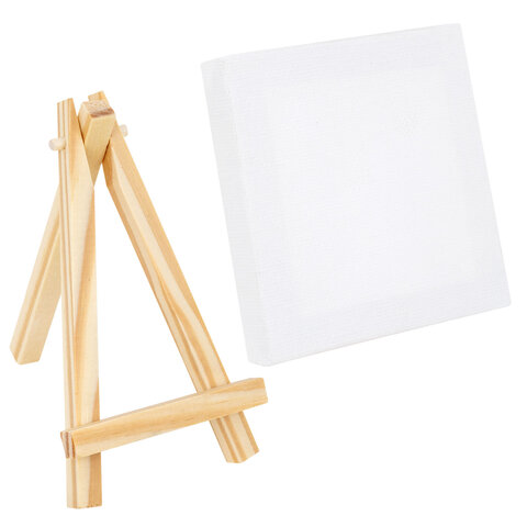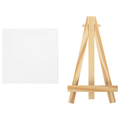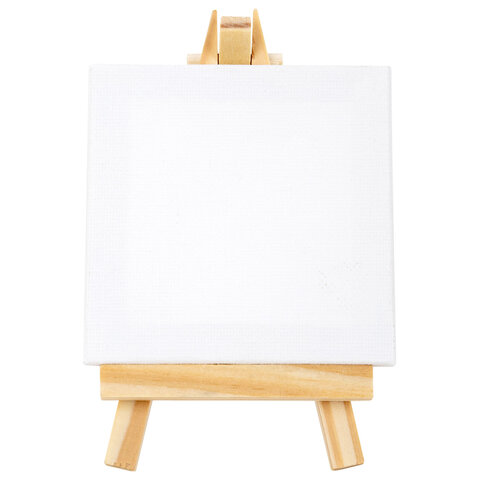 Настольный мини-мольберт с холстом 10х10 см, BRAUBERG ART DEBUT, сосна, хлопок, 192680
