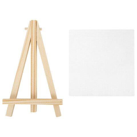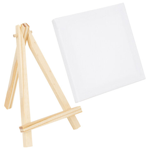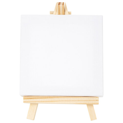 Настольный мини-мольберт с холстом 8х8 см, BRAUBERG ART DEBUT, сосна, хлопок, 192679