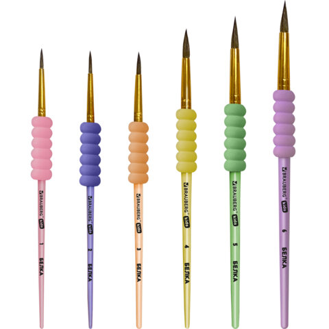 Набор из шести кистей разного размера c мягкой EVA-вставкой BRAUBERG KIDS позволяет начинающим художникам решать любые творческие задачи в детском саду, школе и дома.