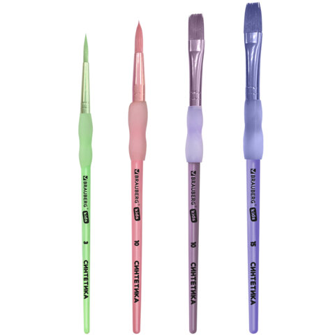 Набор из четырёх кистей разного размера c мягкой силиконовой вставкой BRAUBERG KIDS позволяет начинающим художникам решать любые творческие задачи в детском саду, школе и дома.
