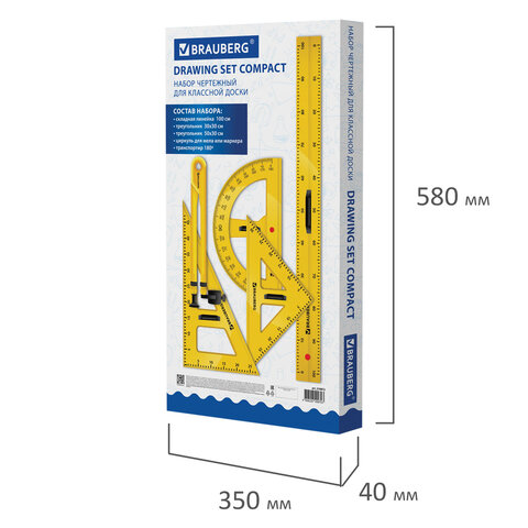 Набор чертежный BRAUBERG предназначен для выполнения чертежных работ на классных досках.