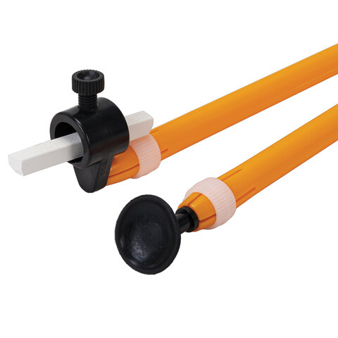 Инструмент длиной 45 см изготовлен из пластика оранжевого цвета. Имеет удобную конструкцию. В комплекте присоска и держатель для мела. Поставляется в воздушно-пузырчатой пленке.