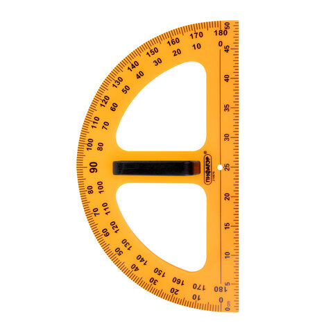 Пластиковый транспортир ПИФАГОР предназначен для выполнения чертежных работ на классных досках.