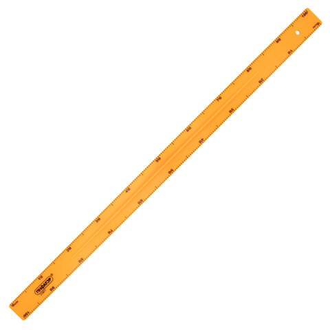 Линейка имеет четкую контрастную сантиметровую шкалу и эргономичный держатель по центру линейки. Длина шкалы составляет 100 см. Изготовлена из прочного пластика. Упакована в воздушно-пузырчатую пленку.