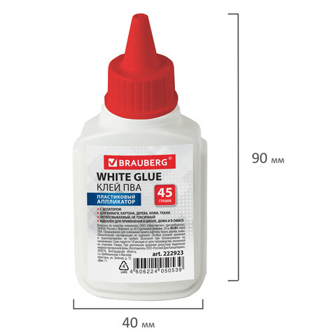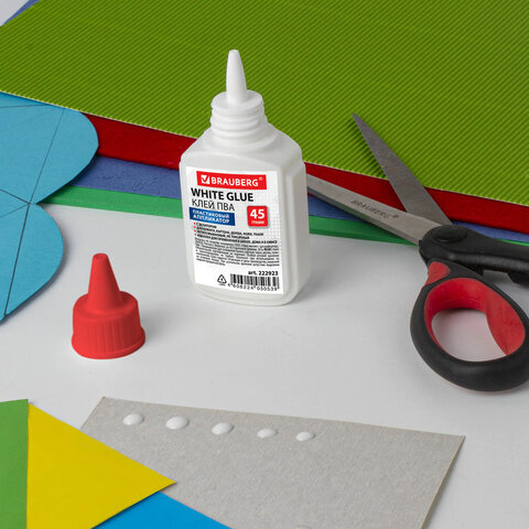 Клей ПВА BRAUBERG предназначен для склеивания бумаги, картона, фотографий, дерева.