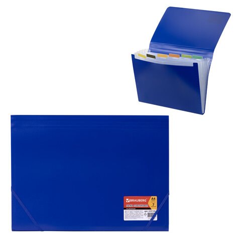 Формат: А4 Серия: Business Количество отделений: 7 шт. Фактура: песок Застежка: резинки Толщина материала: 0.5 мм Индексные ярлычки: да Высота: 328 мм Ширина: 235 мм Глубина: 27 мм Материал: пластик Цвет: синий