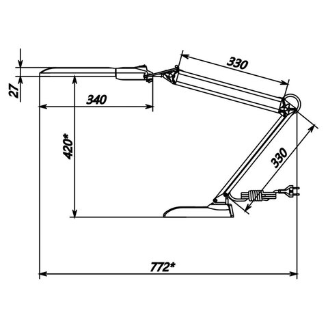 Настольный светильник на подставке для люминесцентных ламп мощностью 11 Вт, что аналогично яркости 60 Вт лампы накаливания. Отсутствует акустический шум и мерцание. Рекомендован для работы за компьютером.