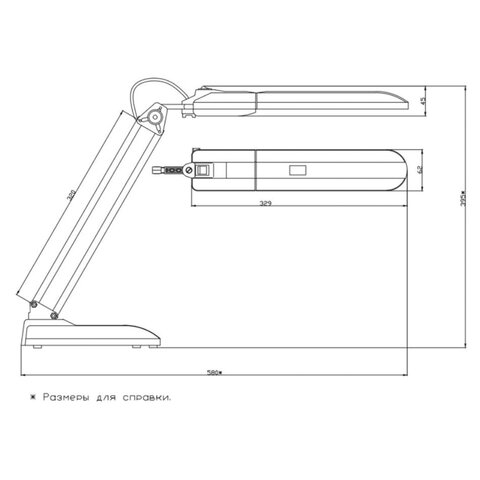 Настольный светильник на струбцине для люминесцентных ламп мощностью 11 Вт, что аналогично яркости 60 Вт лампы накаливания. Отсутствует акустический шум и мерцание. Рекомендован для работы за компьютером.