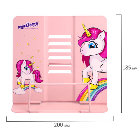 Назначение: для книг и учебников Регулируемый угол наклона: да Держатель для страниц: нижний Серия: Cute Материал корпуса: металл Высота: 18.5 см Ширина: 20 см Цвет: розовый Дизайн: Neon Unicorn Упаковка: пакет