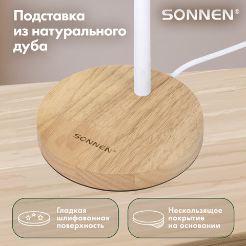 Добавьте стильный акцент в рабочее пространство с настольной лампой высотой 40 см. Белый матовый плафон обеспечит мягкое, равномерное освещение, снижая нагрузку на глаза во время работы. Подставка из натурального дуба гармонично впишется в современный офисный интерьер.