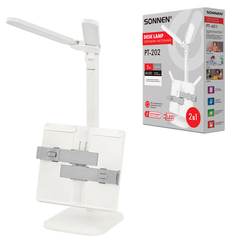 Тип лампы: светодиодная Тип крепления: подставка Мощность: 5 Вт Цоколь: нет Назначение: универсальный Серия: PT-20 Цветность света: нейтральный белый - 3500-4500 К, теплый белый - 2700-3400 К, холодный белый - от 6100 и более Световой поток: 450 Люмен Кол-во режимов свечения: 3 Источник света: 60 LED Источник питания: сеть, аккумулятор Расположение кнопки выключателя: на корпусе Сенсорный выключатель: да Произвольная регулировка направления подсветки: да Отсутствие мерцания и шумов: да Складная конструкция: да Высота: 53 см Длина шнура: 1.2 м Материал корпуса: пластик Цвет корпуса: белый
