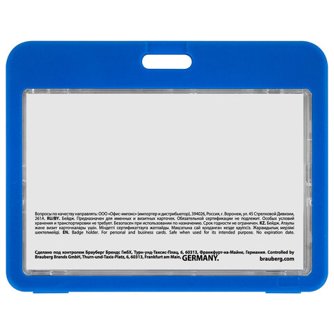 Горизонтальный бейдж BRAUBERG предназначен для хранения пропусков и карточек сотрудников, ID-карт, проездных и банковских карт.