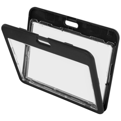 Тип бейджа: для проездных, пропусков, карт Тип крепления: без держателя Положение: горизонтальное Количество в комплекте: 1 шт. Размер вкладыша (ДхШ): 54х85 мм Размер бейджа (ДхШ): 77х99 мм Серия: Double-sided Цвет крепления: нет Материал корпуса: твердый пластик Цвет корпуса: черный Наличие картонной вставки: да