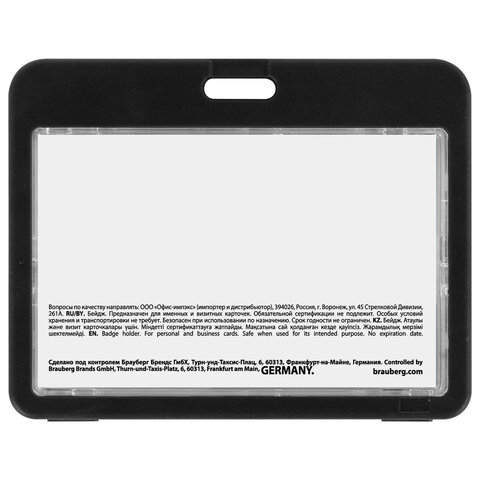 Горизонтальный бейдж BRAUBERG для хранения пропусков и карточек сотрудников, ID-карт, проездных и банковских карт.
