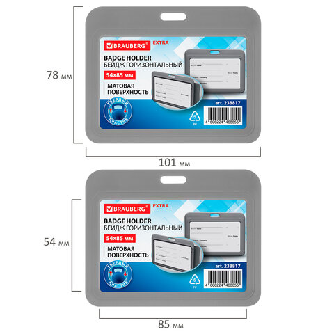 Горизонтальный бейдж BRAUBERG для хранения пропусков и карточек сотрудников, ID-карт, проездных и банковских карт.