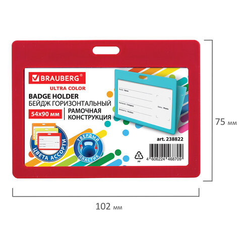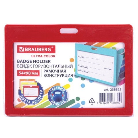 Горизонтальный бейдж BRAUBERG ULTRA COLOR для хранения тонких пропусков и карточек сотрудников, ID-карт, проездных и банковских карт.