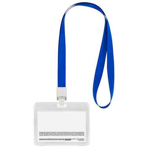 Тип бейджа: для проездных, пропусков, карт Тип крепления: лента Положение: горизонтальное Количество в комплекте: 1 шт. Размер вкладыша (ДхШ): 54х85 мм Размер бейджа (ДхШ): 77х100 мм Серия: Double card Цвет крепления: синий Материал корпуса: твердый пластик Цвет корпуса: прозрачный Длина ленты/шнурка: 45 см Наличие картонной вставки: да